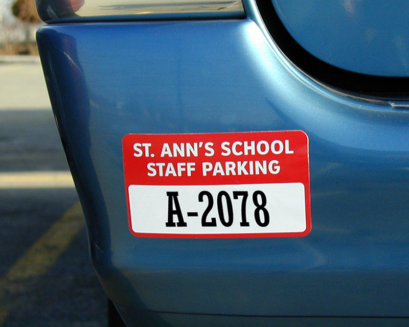 Our most popular bumper stickers use reflective material, which significantly increases visibility in low-light conditions. this not only makes verification easier for security staff (especially when checked with a flashlight) but also adds a nice safety feature by making the vehicle more visible to other drivers at night. This reflective quality is similar to our reflective outside-window permits.