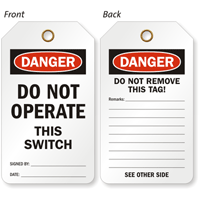 • • For enhanced durability, consider our self-laminating Danger Tags. Your writing is sealed and then protected from weather and tampering.
