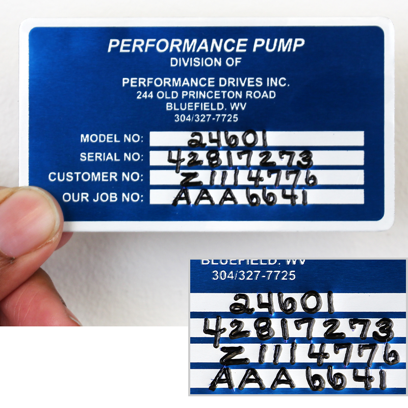 Debossable (dead soft) aluminum allows you to write in your own information, permanently, even if the ink wears away. Ideal for periodic record keeping and other field inputs. Use a pen or typewriter to indent the self-debossing fields.