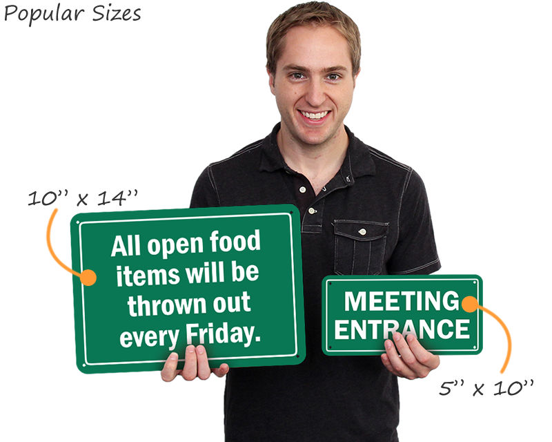 Mini signs are great when space is tight. Each design is available in a wide range of materials.