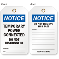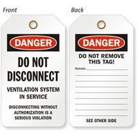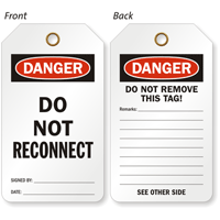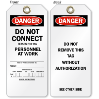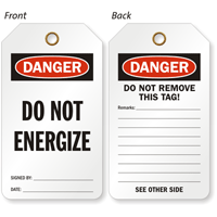 Tags help you comply with OSHA's lockout/tagout procedures, which cover “the servicing and maintenance of machines and equipment in which the unexpected energization or start up of the machines or equipment, or release of stored energy, could harm employees.”