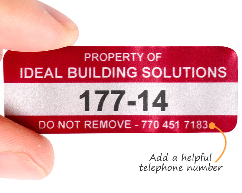 Yes, our custom templates allow you to combine the "Do Not Remove" warning with your full company branding and contact information. This professional look is standard for all custom asset tags, making it clear that the item belongs to a specific entity.