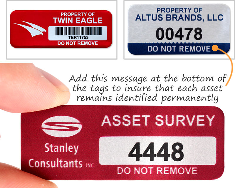 Anodized aluminum is best because it cannot be easily scratched off, making the "Do Not Remove" warning a permanent part of the asset. Our AlumiGuard aluminum tags are the most durable choice, while our PermaGuard labels offer a rugged plastic alternative.