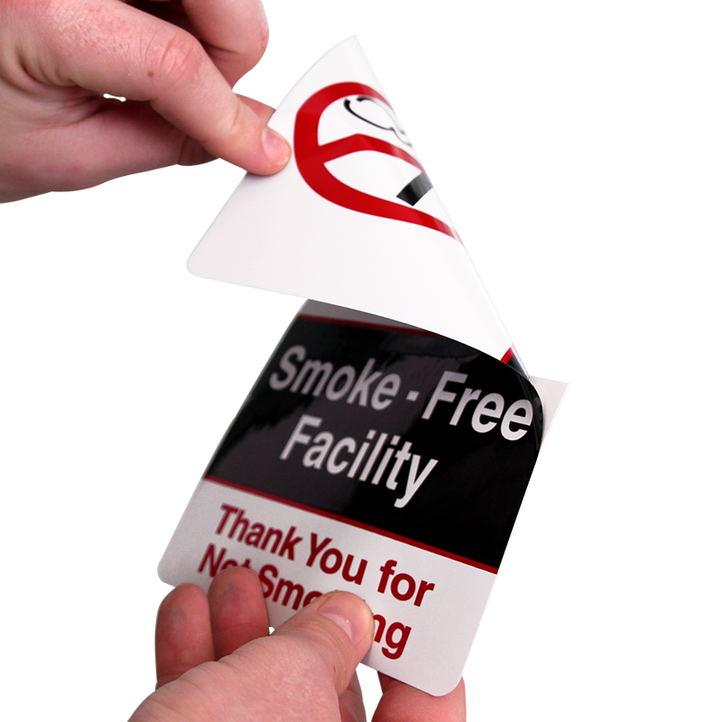 - Screen printed decals have a durable, permanent adhesive. For temporary, or reusable labels, try removable polyester or static cling. Polyester decals with removable adhesive are better for non-glass or textured surfaces.