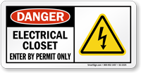 Electrical Closet are installed with transformers, pull boxes, connection boxes, and other high voltage supplies. It is important that electrical closets are accessible to qualified persons only. Electrical Closet Signs make sure untrained individuals do not enter the electrical rooms by accident.