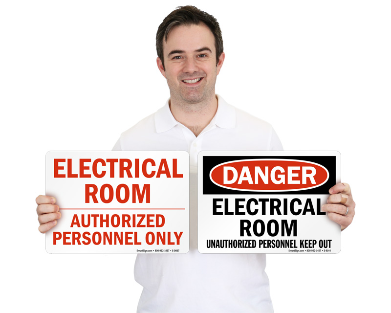Keep unauthorized people out of your electrical room with these bold Electrical Room Warning Signs! Electrical warning signs alert others to the hazards and help prevent accidents.