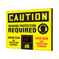 Each year millions of workers are exposed to potentially damaging noise at work. Noise induced hearing loss limits your ability to hear high frequency sounds thus impacting speech which makes it extremely difficult to communicate. Our Decibel Meter Signs continually measure and display decibel levels to alert workers of the need for ear protection—allowing workers to be vigilant for dangerously loud sounds that could lead to potentially debilitating effects.