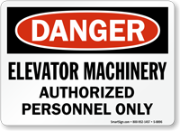 Yes. Building codes and ASME A17.1 elevator safety standards require that elevator machine rooms be restricted to authorized personnel and clearly marked. OSHA also requires that high-voltage electrical equipment be clearly labeled. Our elevator machine room signs help satisfy both requirements, with Danger and Authorized Personnel Only options available in multiple sizes and materials.