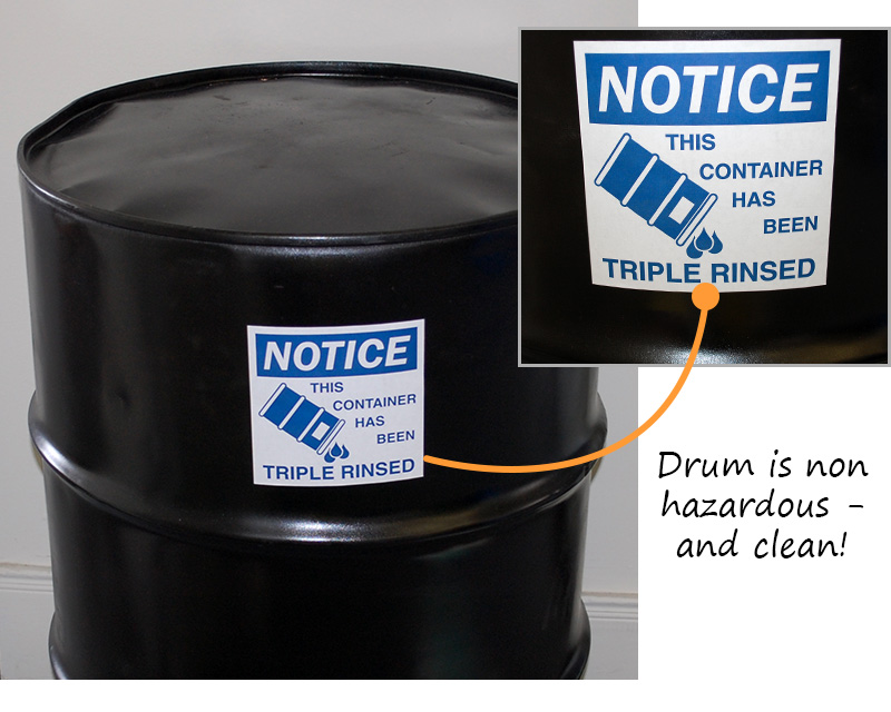 Use our Empty Drum Labels to make sure that your empty drums are clearly labeled and, importantly, are NOT considered hazardous. Our triple rinsed Hazwaste Label helps you satisfy the 40 CFR 261.7 (a)(3) regulations that a drum or other container that has held an acute hazardous waste is considered Empty.
