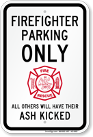 These signs reserve prime parking spaces for volunteer or professional firefighters at stations, municipal buildings, or private businesses. Installing a firefighter parking sign ensures that emergency responders can park quickly and respond to calls without delay, honoring their service and improving response times.