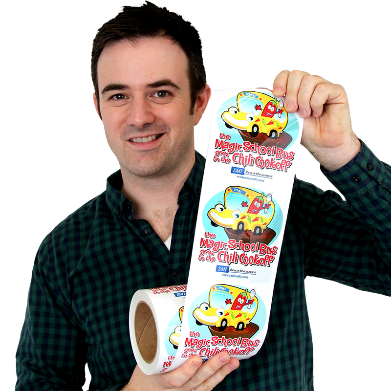 • Material options include vinyl, polypropylene, static cling, and of course, paper. Choose from different grades of adhesive, including permanent and removable.