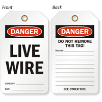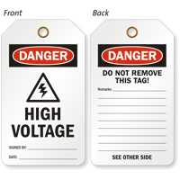 A quick way to alert workers to dangerous electrical sources is to tag them. Our high voltage tags let you mark energized machines and other equipment with necessary information to prevent accidental contact, unauthorized and untrained handling.