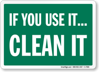 We carry workplace housekeeping signs covering keep area clean, clean up after yourself, good housekeeping prevents accidents, and return tools to storage reminders. Signs are available in aluminum, plastic, and adhesive vinyl for posting at workstations, break rooms, production floors, and storage areas - serving as daily visual reminders that support 5S programs and OSHA housekeeping compliance.