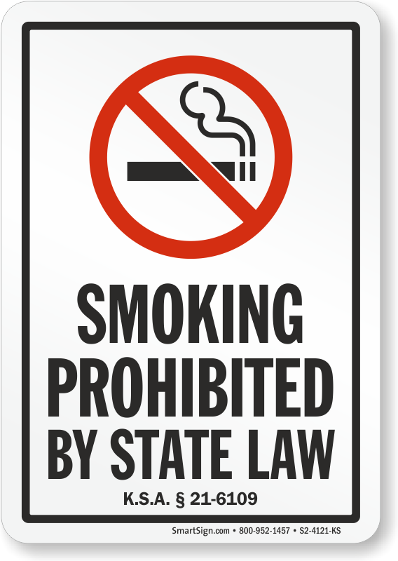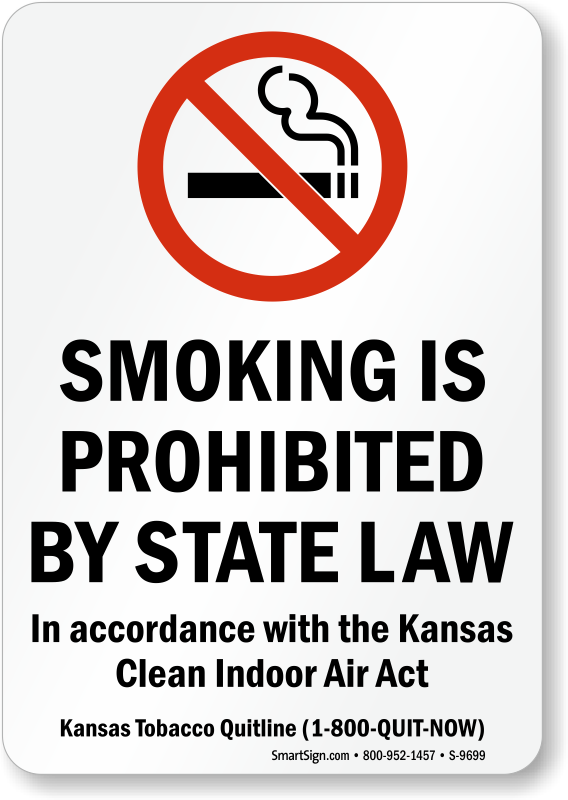 While no statewide smoking ban exists for Kansas, many cities and counties within the state have enacted their own smoking bans. Please check with your local government to find what is required of you and your business in regards to smoking and proper signage.