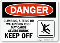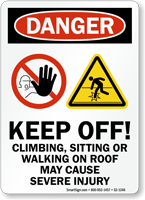 We carry keep off signs specifically for rooftop and elevated surface applications in aluminum and adhesive formats. Rooftop keep off signs warn maintenance personnel and unauthorized visitors against walking on fragile roof sections or restricted mechanical areas. Our aluminum signs are weatherproof and available with pre-drilled holes for permanent attachment to rooftop barriers and equipment housings.