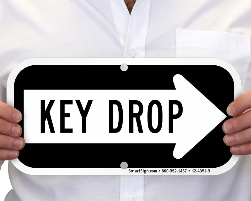 Mark key drop areas and boxes with conspicuous and attractive Key Drop Signs. Post rules about submitting keys. Point guests and customers to where they can do that, with directional signs.