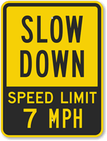 No, public traffic engineers typically set speeds in 5 MPH increments. 7 MPH signs are intended for private property usage only and should not be used as a substitute for official maximum speed limit signs on public roadways.