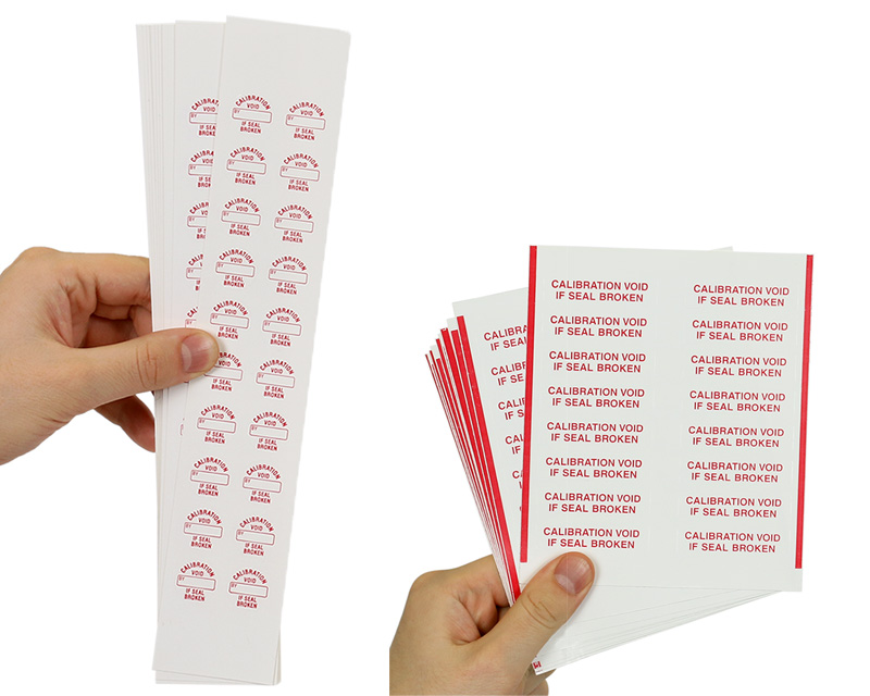 • • Tough calibration seals are ideal for subtle placement on the seams and gauges of your equipment to show signs of tampering.