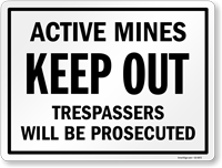 • • Find mine signs that are durable outside and can be mounted to any post or fence.