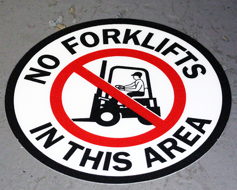 Yes. We offer no forklifts floor signs in SlipSafe anti-skid vinyl that mark the boundary of pedestrian-only zones directly at floor level. Floor signs position the prohibition message where forklift operators look when approaching a restricted area, providing an additional visual barrier that reinforces wall-mounted no forklift signs at ground level in high-traffic warehouse and manufacturing environments.