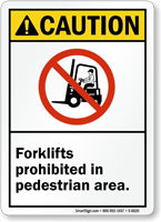 Yes. We offer no forklifts signs with a forklift pictogram crossed with a prohibition symbol - immediately recognizable to forklift operators without requiring them to read text. Pictogram-based no forklift signs are the most effective format for high-speed warehouse environments where operators are moving and need to process the restriction message at a glance as they approach a restricted zone entrance.
