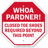 Use a No Open Toed Shoe sign or Closed Toe Shoes Required Signs at entrances and visitor registration areas. Signs provide a kindly reminder. Make it easier for everyone to enforce your open toed shoes rules.