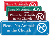 Keep dogs out of your facility with our No Pets Allowed Signs. Place a proven and effective reminder to keep pets and animals under control. Post your policy right at the entrance, on a door or window.