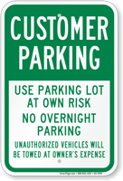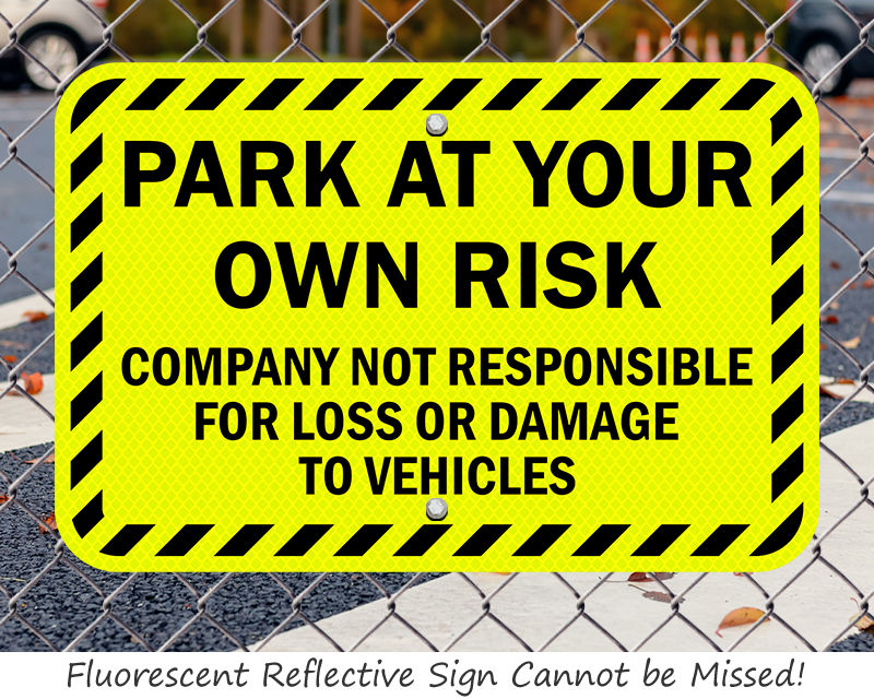 We highly recommend using a reflective coating for park at your own risk signs. Since vehicle break-ins frequently occur at night, the 3M reflective sheeting ensures your liability warnings remain completely visible to drivers pulling into dark lots or poorly lit garages.