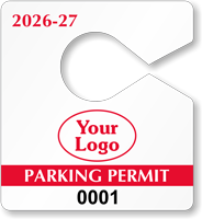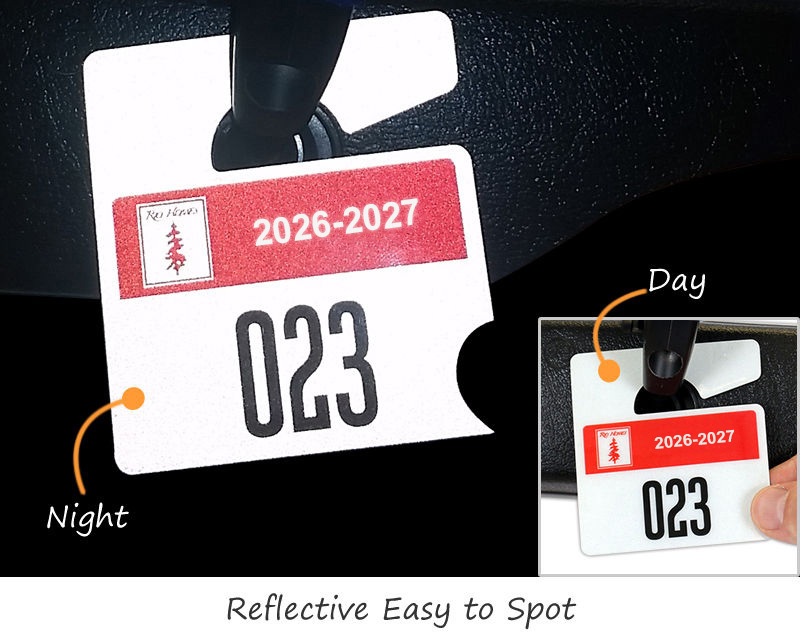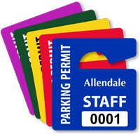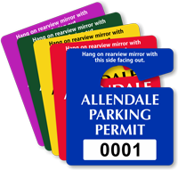 Mini parking hang tags are small, discreet permits designed to hang from a rearview mirror. They are less obtrusive than standard-sized tags, making them a popular choice for daily driver use while still identifying authorized vehicles. Explore our full collection of mini parking tags.