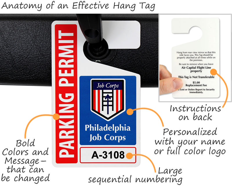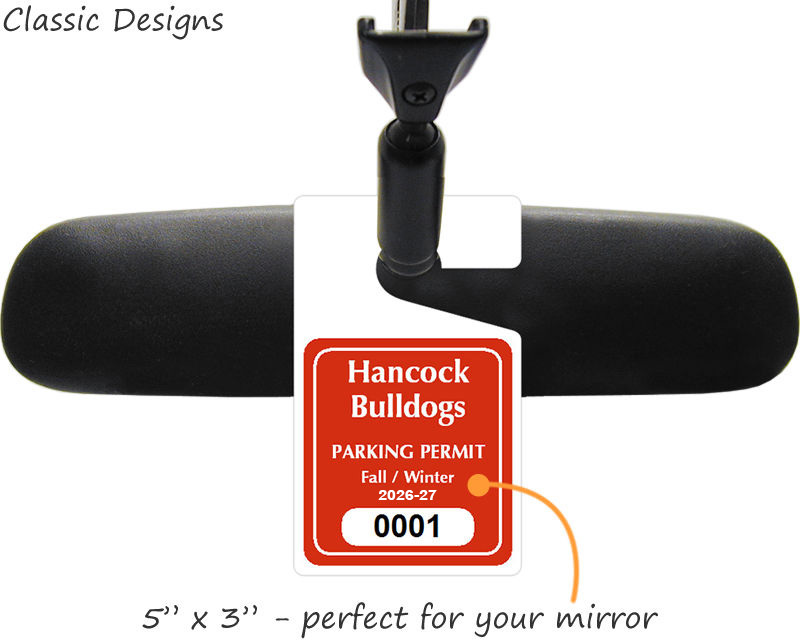 A standard-size parking hang tag is the most common and popular permit size. It offers a perfect balance between being large enough for security to see clearly, yet small enough that it doesn't overly obstruct the driver's view. See our full collection of standard parking tags.