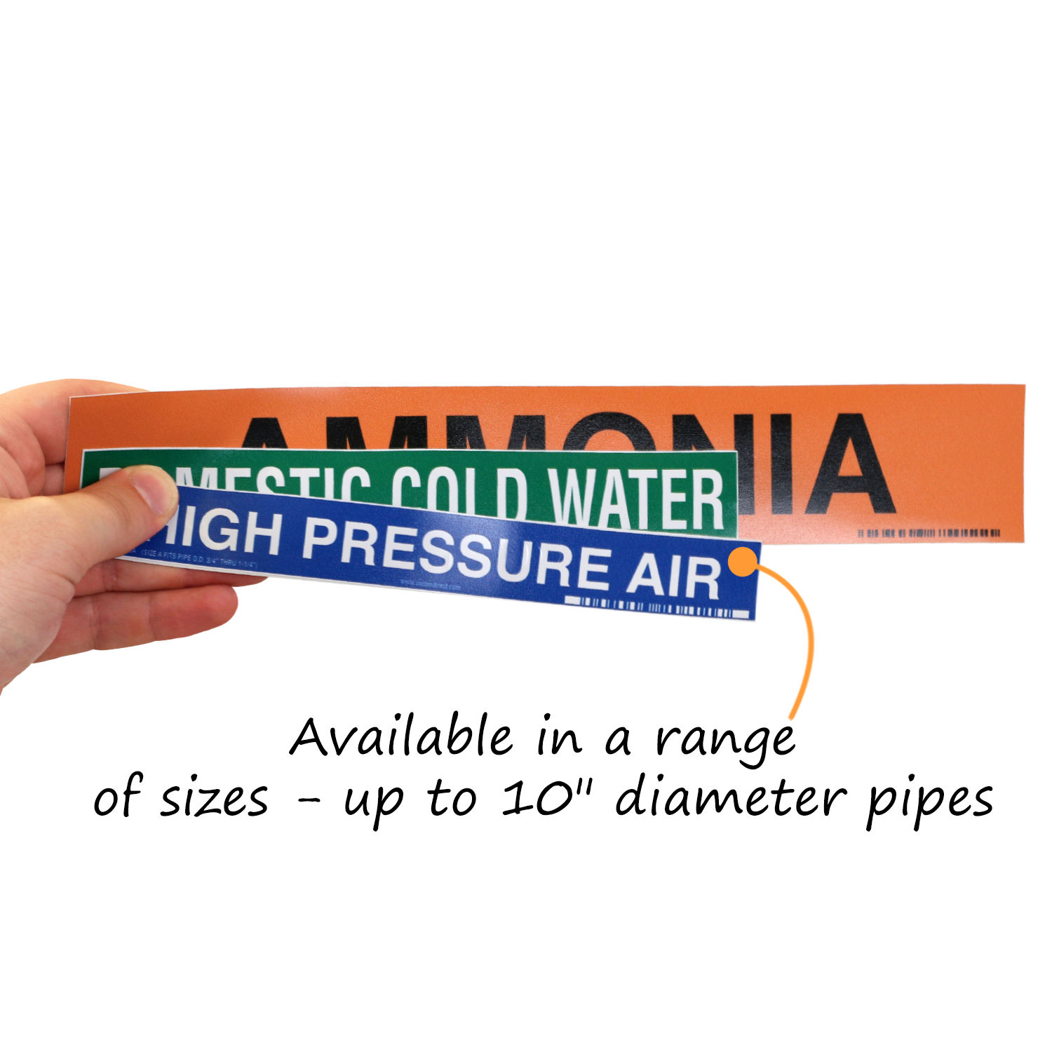 Size: 1.25" x 8" Material type: Adhesive Pipe Marker