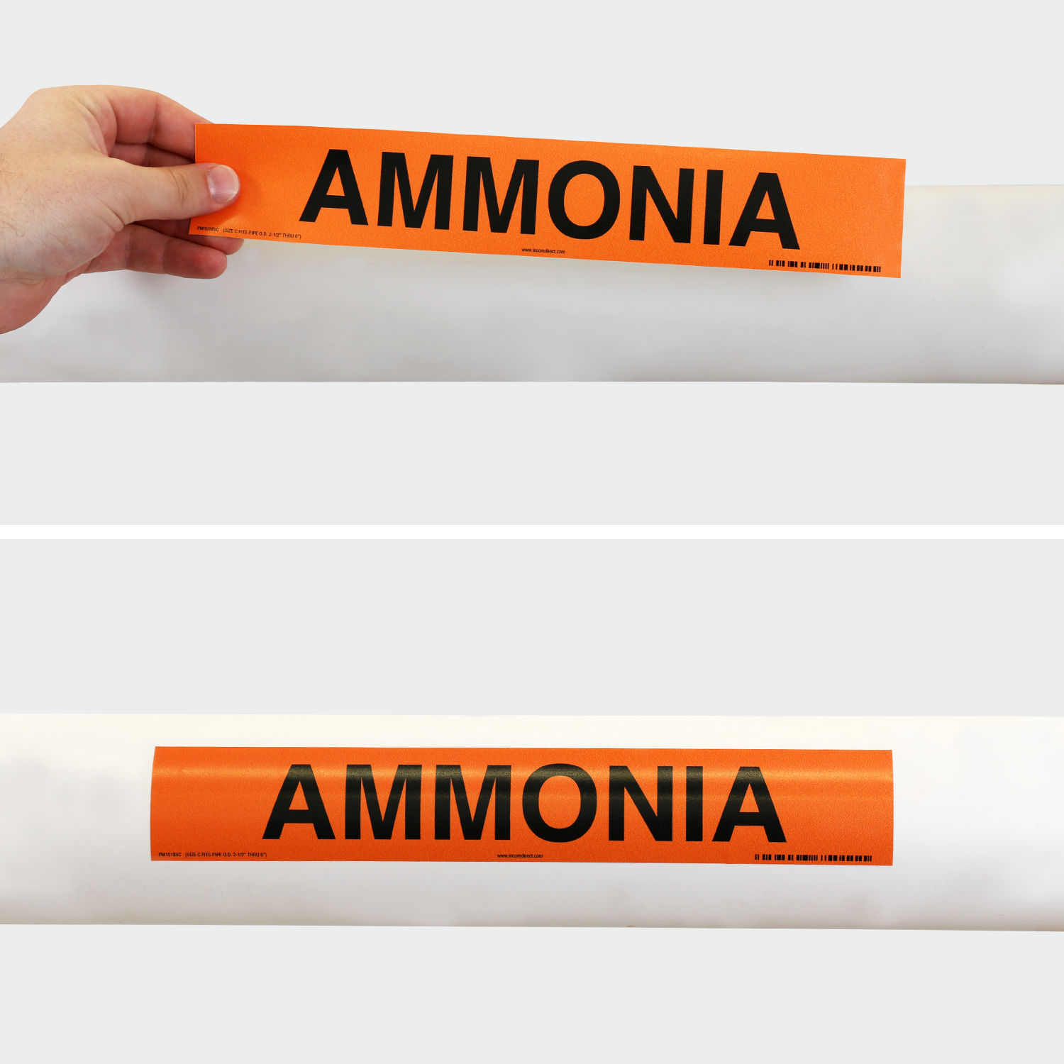 Size: 1" x 8" Material type: Adhesive Pipe Marker