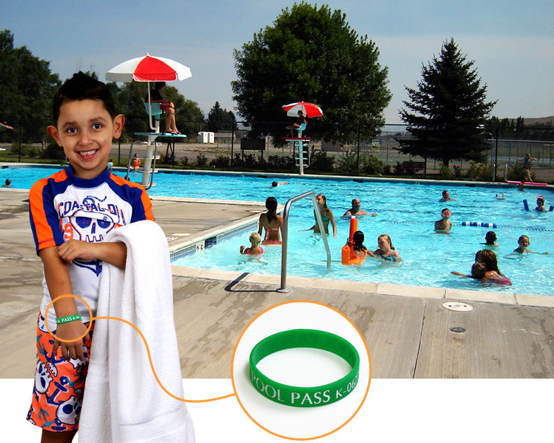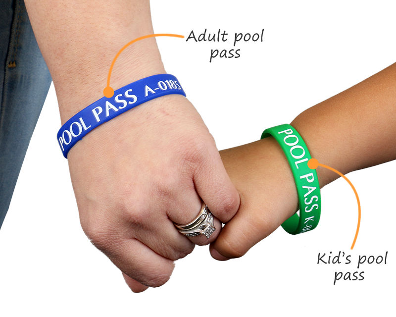 • • These passes are perfect for your kids or even for forgetful adults. The flexible bands securely stay on their wrists, and the pool pass tags can easily be attached to a key ring.