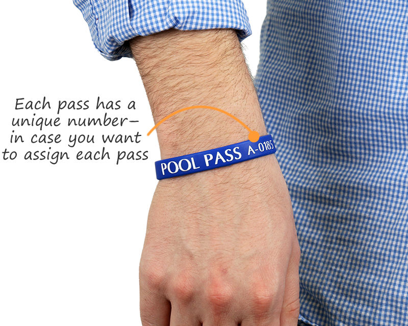 Made from synthetic silicone rubber, our silicone Wristband Pool Passes are stretch-resistant. These bands will always return to their original shape regardless of how much they are stretched and pulled.