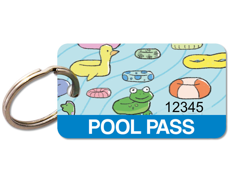 Featuring embedded graphics on 35 mil thick plastic, our tear-proof, weatherproof, and abrasion-resistant plastic Pool Passes feature a 3/16" pre-punched hole. This hole lets you attach a keyring to the pass, which can be ordered separately here.