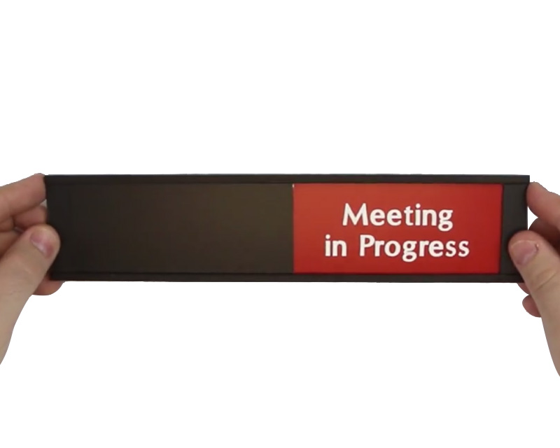 sliding status indicators allow discrete session updates without disrupting therapeutic flow, maintaining client privacy while informing staff and preventing interruptions that could compromise treatment effectiveness. See our engraved slider signs for common styles.