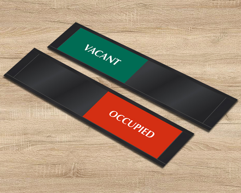 Adding time indicators such as “Vacant Until [TIME]” or “Next Appointment at [TIME]” helps reduce repeated checks. This feature is especially useful in healthcare and conference rooms. Our procedure room vacant occupied slider signs and whirlpool occupied slider signs allow easy customization for such needs.