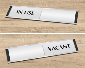 Clear vacant occupied signs eliminate unnecessary knocking and checking, cutting interruptions by up to 75% in offices. They improve privacy and productivity for both room occupants and those seeking space. Browse our in-use/vacant door sliders and classroom in-use signs for various applications.