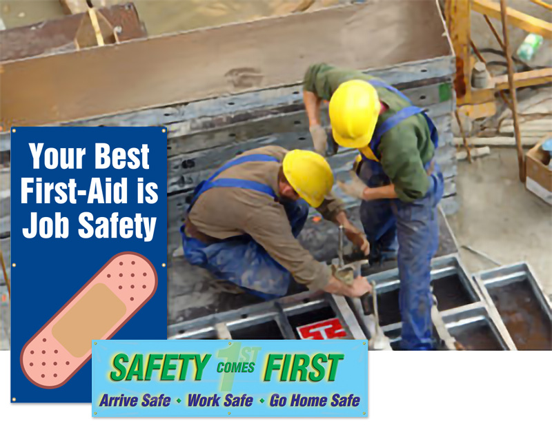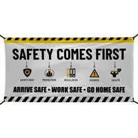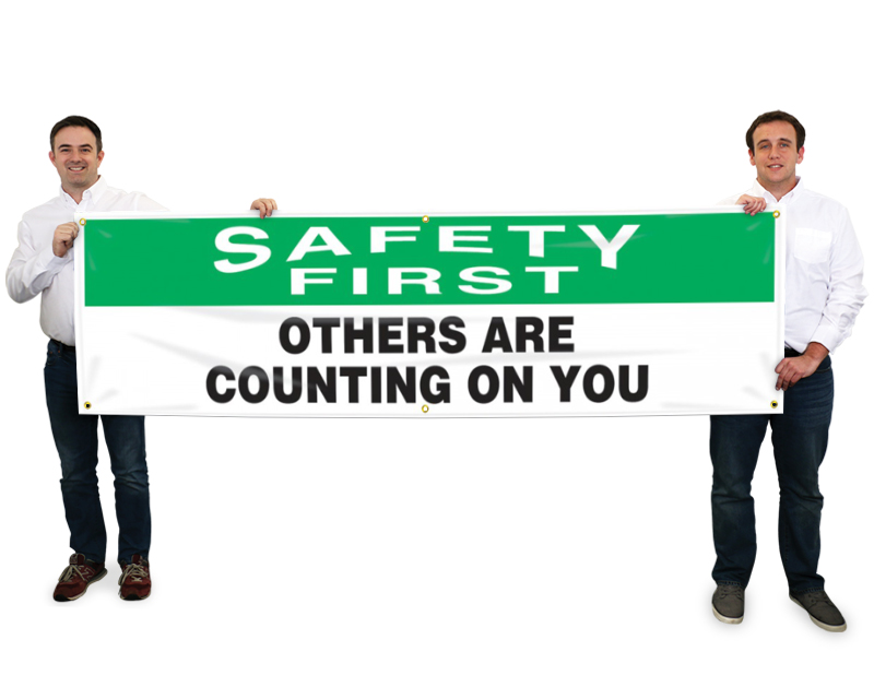 - • Available in different sizes, you can choose Safety First Banners that are large enough to view and get employees’ attention instantly.