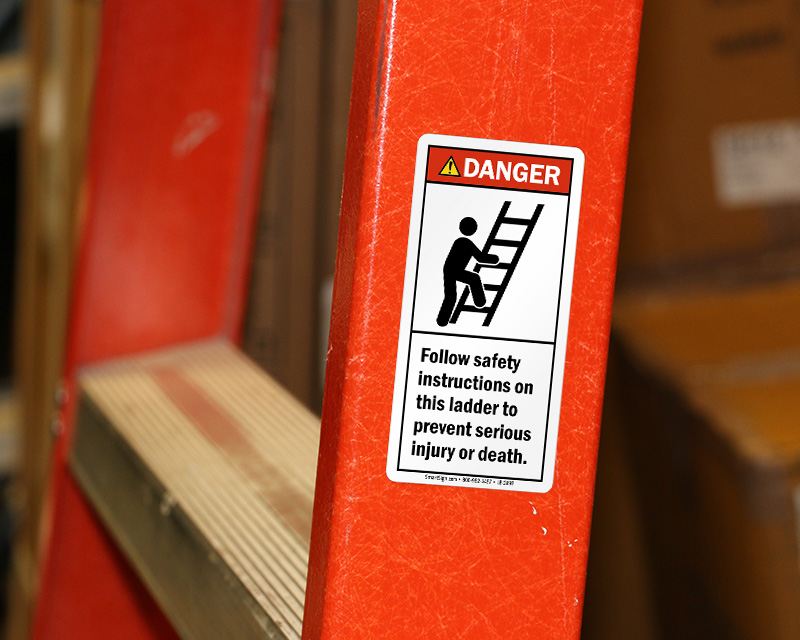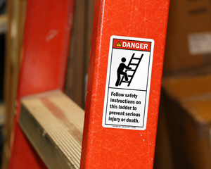 • • Don’t let a misstep become the cause of an injury to your employees. Install labels and signs near ladders and ensure employee safety.