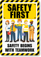 We carry bright, eye-catching safety slogan signs covering topics like safety first, think before you act, work safe go home, and many other motivational safety messages. Signs are available in aluminum, plastic, and vinyl formats for posting throughout a facility - in break rooms, production floors, entrances, and high-traffic areas where a visible safety culture reminder has the most impact on worker mindset.