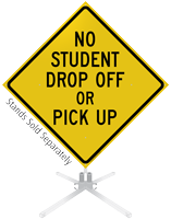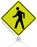 • • Compact signfaces have permanently riveted crossbraces with a quick-release trigger for instant collapse and wrapping around the upright.