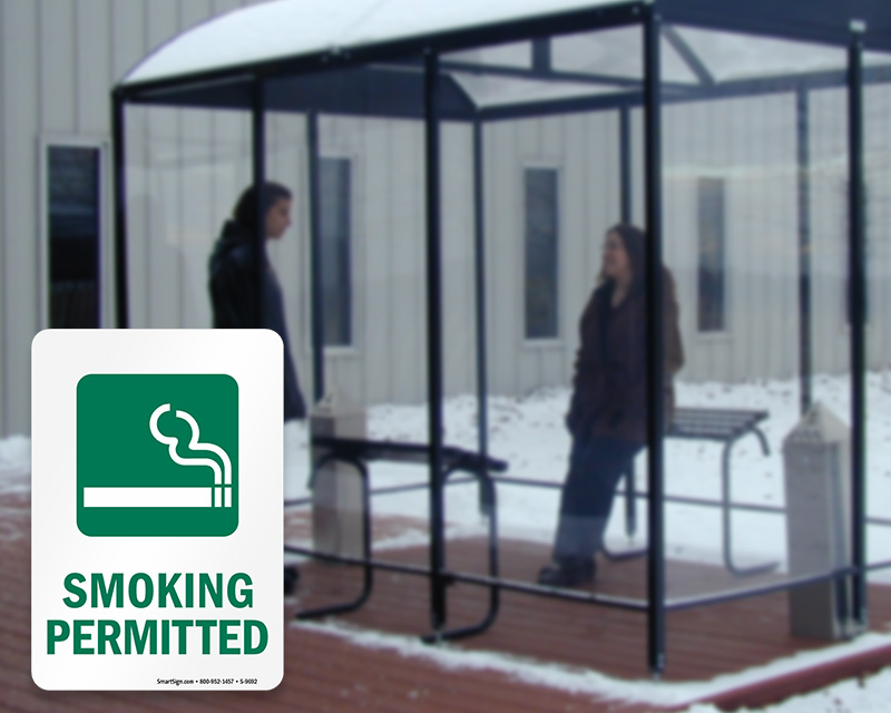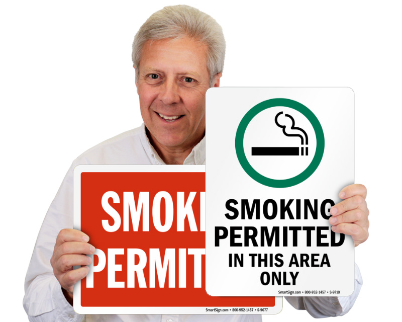 Part of the solution to cleaning the air is to move smokers to a designated smoking area. Post our Smoking Allowed Signs to communicate your smoking policies and guide patrons to an area where they can smoke, thus reducing the chances of passive smoking.
