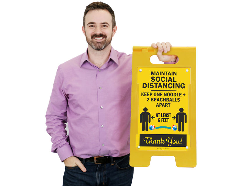 Yes. Our BigBoss A-frame sidewalk sign kit gives you this option to change its sign panels. Once the outbreak is over, you can take off the social distancing warning sign panels and replace them with regular pool rules sign panels. Also, our FloorBoss Signs operate in the same way. Message panels can be swapped easily and the plastic frame can be reused. Our Write-on Pool Capacity signs can be used to display the number of persons allowed in pools. This number can be wiped off and changed later on.