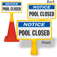 CDC recommends to encourage staff and patrons 2 years and above who are not swimming to wear a cloth face covering. You can use a plastic sign, 40 mil thick aluminum sign,or a laminated vinyl label, all available in different sizes. Other options include ConeBoss Sign that fits on a regular sized traffic or safety cone, Mini A-frame sign, BigBoss sidewalk sign kit with corrugated sign panels. Any of these can be used to inform people on the pool deck to wear a mask.