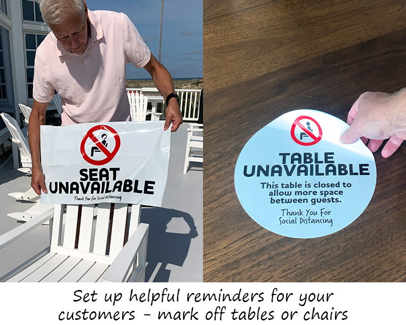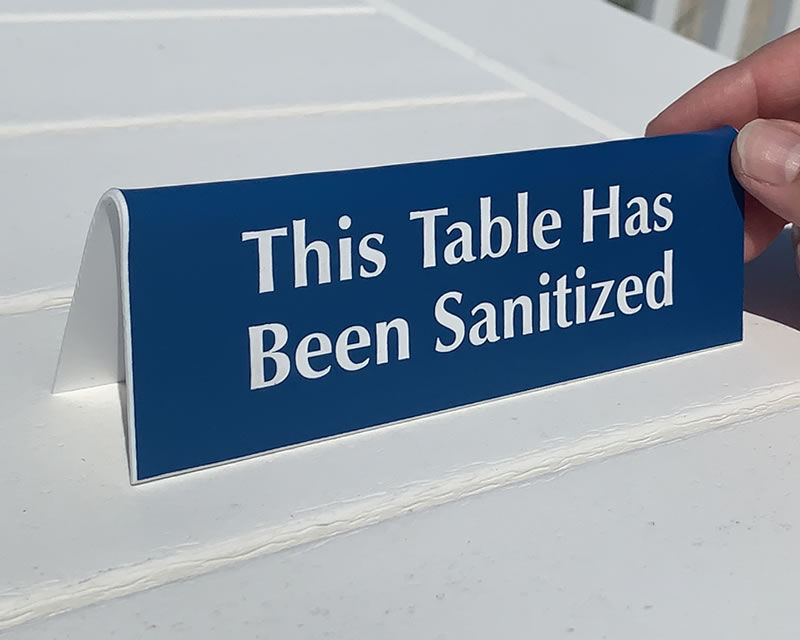 Table-top signs are a good option to ensure that customers follow the new seating arrangement and maintain social distancing while dining or waiting. They can also be used to assure customers of your commitment to their safety.