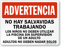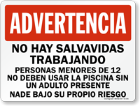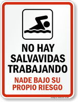 Yes, "no hay salvavidas" is a very common and necessary sign for hotel and apartment pools serving spanish-speaking guests to limit liability. You can find this under no lifeguard signs and spanish pool signs.