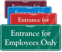 Entrance Door Signs and Labels help mark smoke-free zones, distinguish between "push" and "pull" doors, and provide warnings regarding automatic doors, fire exits, and restricted access areas.