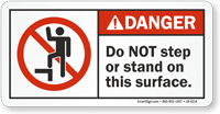Workers can misjudge steps. Install these Step Up Signs in walkways and passages where a step can be miscalculated. These signs prevent trip and fall accidents. We offer ‘Step Up’, ‘Step Down’, ‘Not a Step’, and ‘Do Not Stand On Top Step’ signs.