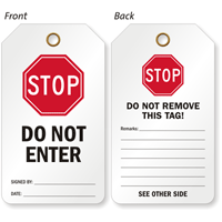 Stop sign shape makes that everyone gets the warning – STOP! These over-sized tags, along with the well-known octagon shape makes it hard to ignore your message.